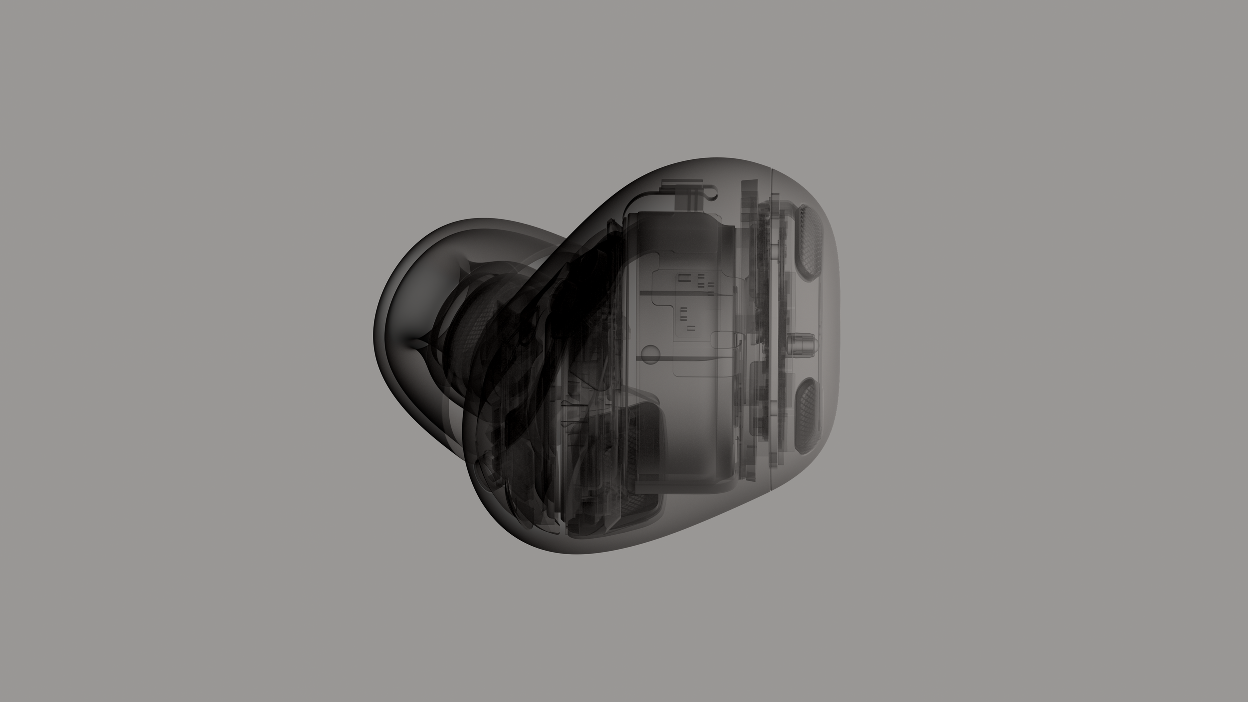 We worked in tandem with Engineering and Human Factors partners to design an earbud that is carefully considered from the inside-out. Components are tiered to sit flush inside the ear, and the details are symmetric and subtle.